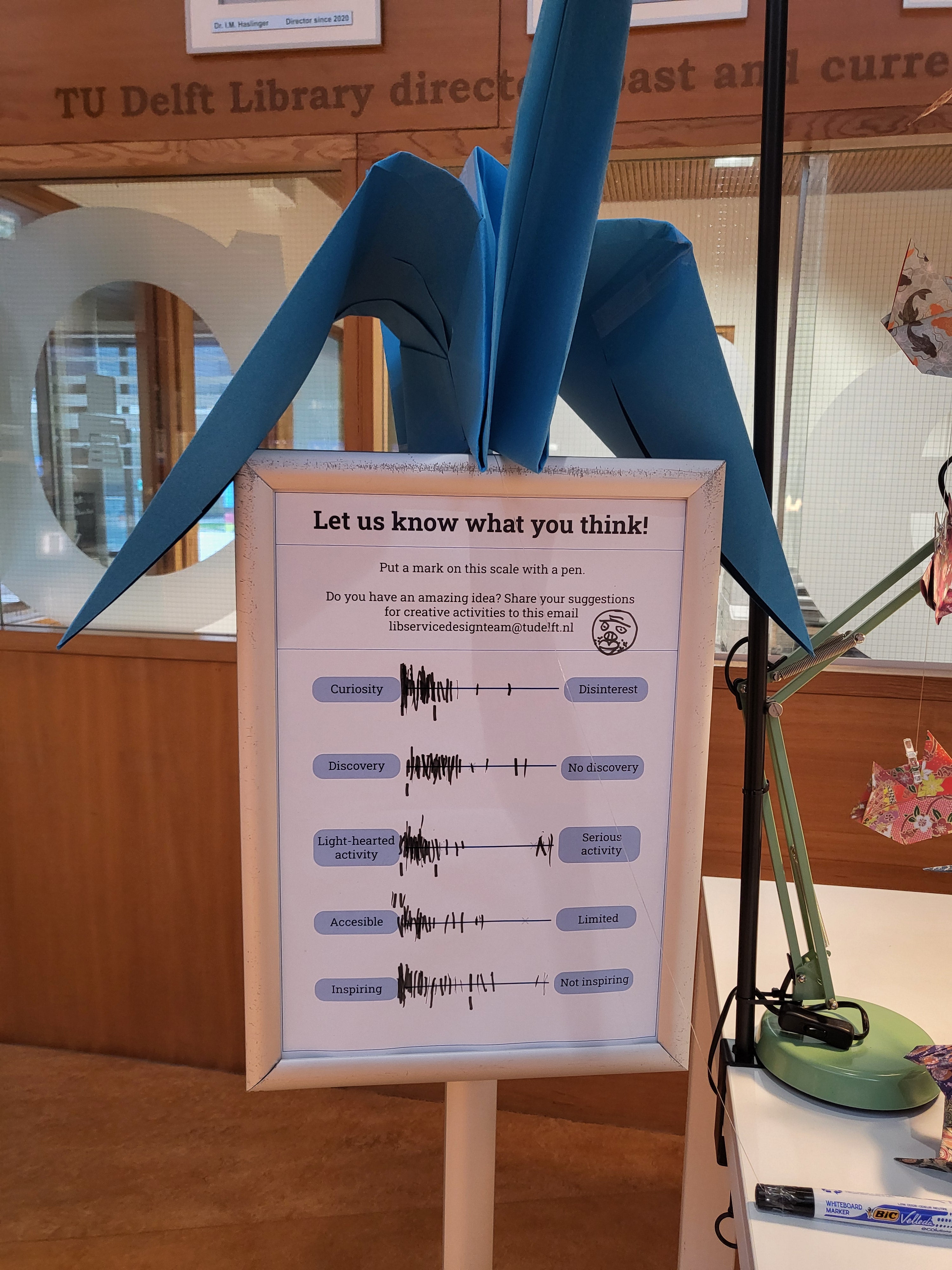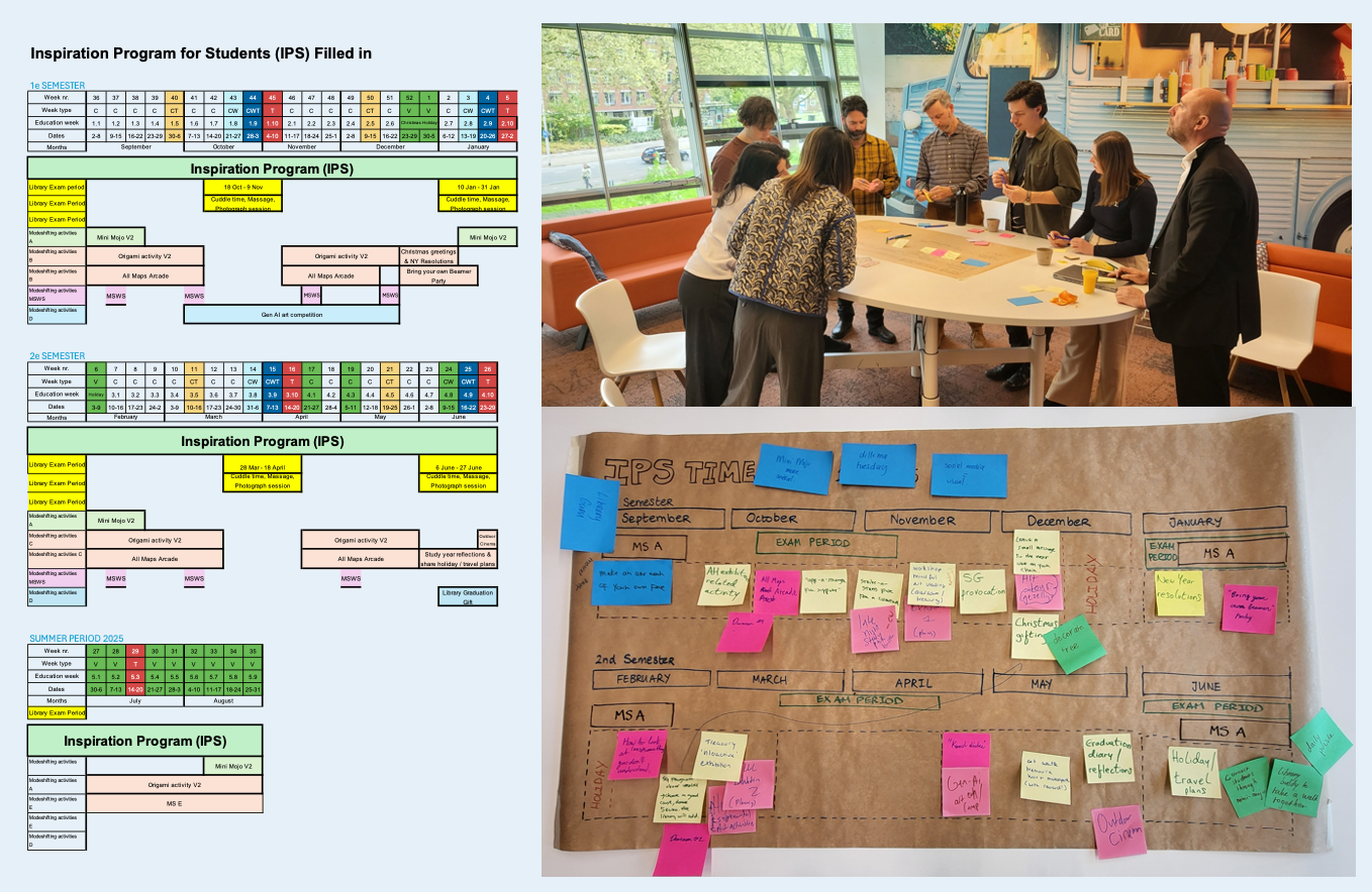 Concept interventions were ideated together with TU Delft students and Library staff. This co-creation was chosen this way to involve Library staff from te beginning. Each intervention was put out and evaluated with students and Library staff. Based on the feedback, Library Learning Center staff could continue with inspirational interventions together with the IPS. - How...