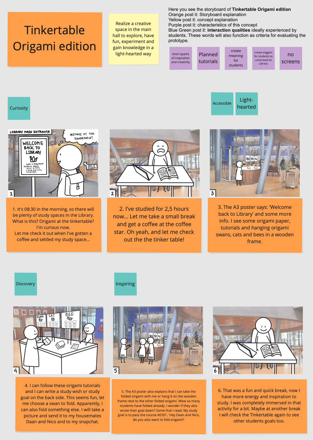 - Ideating and creating the two interventions (Origami activity and Mini Mojo) by use of visual storyboarding and quick prototyping methods