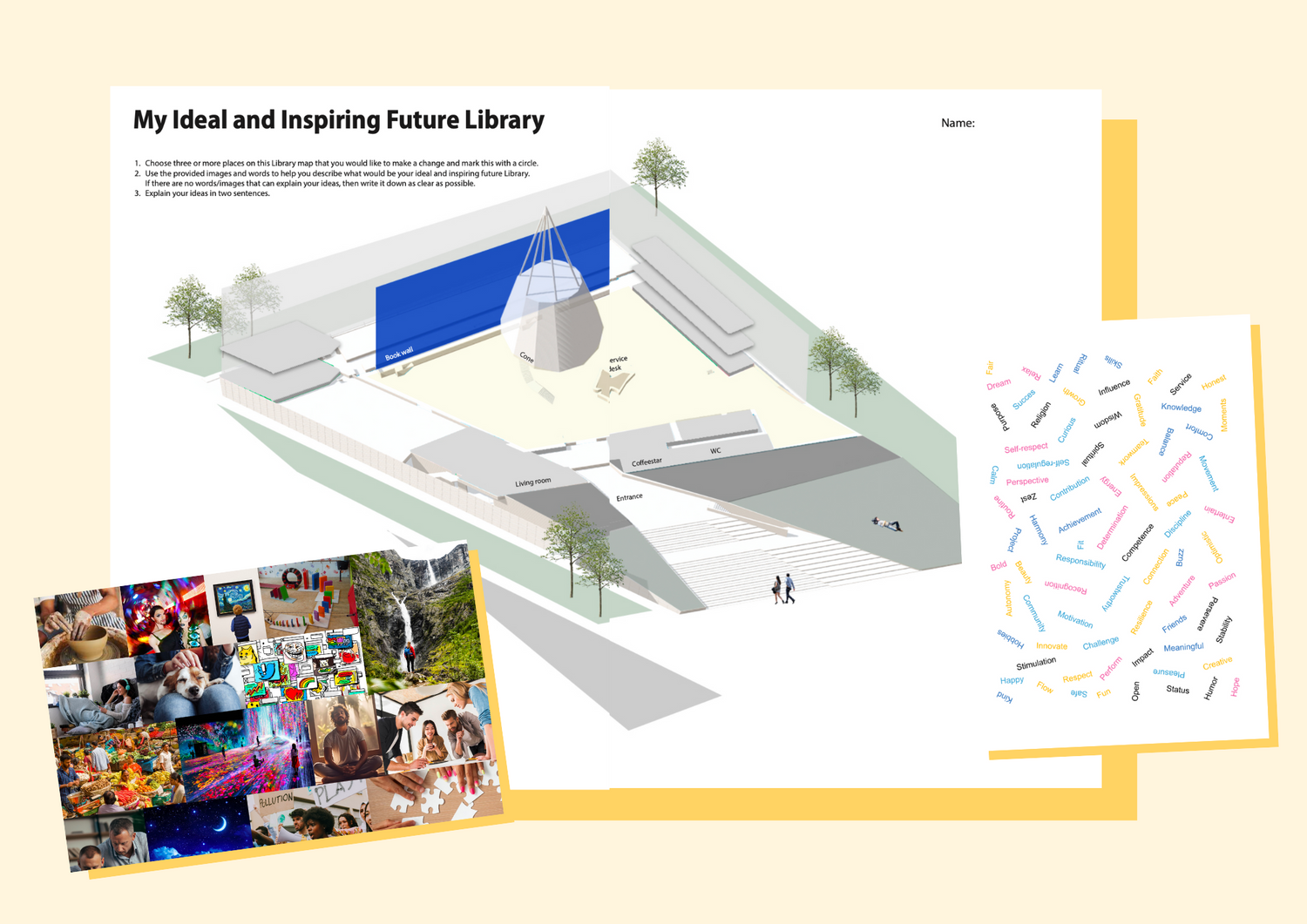 - Organising and creating materials for co-creation sessions with students and Library staff